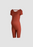 Maternity slim-fit short sleeve one-piece with a round neckline, open back design, four snap buttons on the front, and textured ribbed fabric.