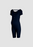 Maternity slim-fit short sleeve one-piece with a round neckline, open back design, four snap buttons on the front, and textured ribbed fabric.